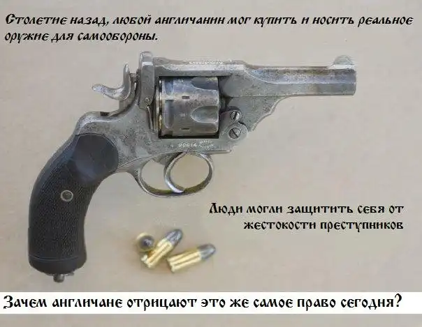 4 (в 1900 году каждый англичанин мог иметь в личном пользовании современное оружие, и уровень преступлений был так низок, что полицейские не носили огнестрельное оружие, сейчас граждане Британии разоружены, и уровень преступности так велик, что полицейские носят с собой пистолеты-пулеметы.)