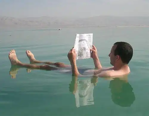 Мужчина, мирно почитывающий журнальчик, лежа на поверхности Мертвого моря, даже не подозревает, что в крепком рассоле, держащем его тело на плаву, живут-поживают галофильные микробы.