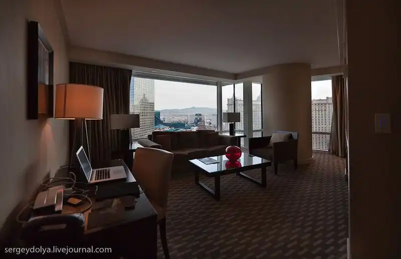 в Вегасе можно снять огромный номер, оборудованный по последнему слову техники в самом центре.