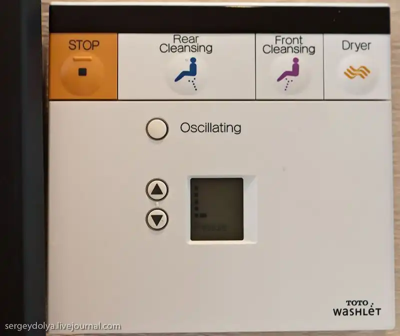 Ну и сам туалет. Сидение с подогревом. Управление всеми остальными процедурами происходит с пульта (см. заглавное фото):