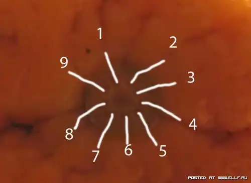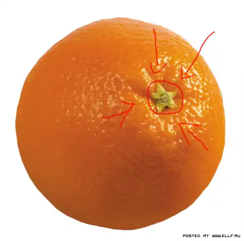 3. Под ней вы сразу увидите малюсенькие дырочки. Сколько дырочек, столько и долек :) Все просто - через эти дырочки апельсин впитывает соки в свои дольки