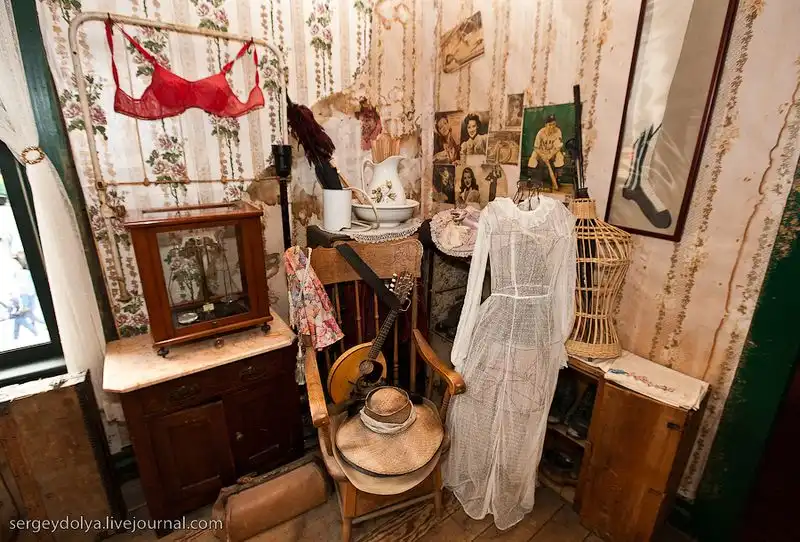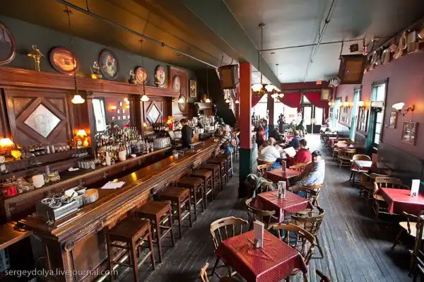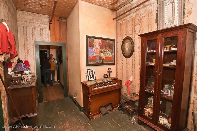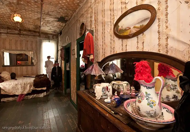 На первом этаже продавали выпивку, а второй этаж был разделен на 10 малюсеньких комнаток, в каждой из которых жила девушка. У бармена было 10 фигурок, максимально похожих на конкретную девушку со второго этажа. Посетитель выбирал себе партнершу по вкусу, ориентируясь на куклу. После того, как выбор был сделан, он поднимался к ней, а бармен переворачивал куклу девушки на спину. Таким образом все знали, чем она в данный момент занята. Каждая комната была соединена с кассой на первом этаже медной трубой. Когда 15-минутный сеанс заканчивался, девушка кидала в трубу деньги (5 долларов золотом). По звуку падающего золота бармен определял, что она освободилась, и переворачивал фигурку обратно..