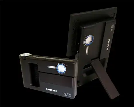 7) Этот концепт от Samsung совмещает две стороны цифровой фотомедали – съемку и просмотр изображений. Фотоаппарат и фоторамка в одном флаконе. На тонком корпусе предусмотрена специальная выемка и захват в форме бочонка – чтобы камеру было удобнее держать. Никаких кнопок настройки – фотоаппарат все делает сам. Ваша задача – наводить объектив на объект и снимать. На большом ярком экране изображения видны отлично, а встроенная подставка-«ножка» позволяет поставить камерорамку на комод.