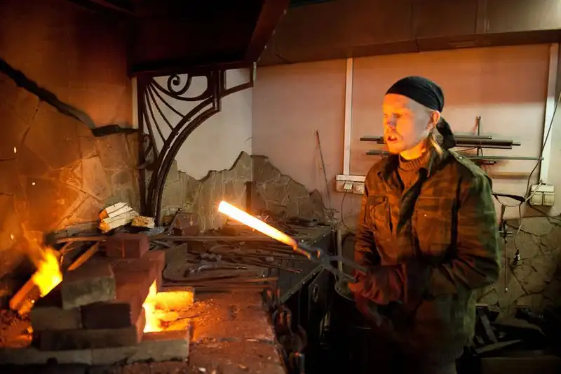 8. Понемногу мы с Виктором разговорились, и я спросил, как же он стал кузнецом. - Совершенно случайно. Я тогда ещё занимался реставрацией, и понадобилась мне хитрая стамеска – настолько хитрая, что нигде такой не найдёшь. Разве что самому делать. Вот так я и попал в кузницу. Ну а потом само собой пошло. Виктор ловко выхватывает щипцами раскаленную добела полосу металла из горна и продолжает рассказывать, как случай заставил его заменить кузнеца в его родном Великом Устюге.