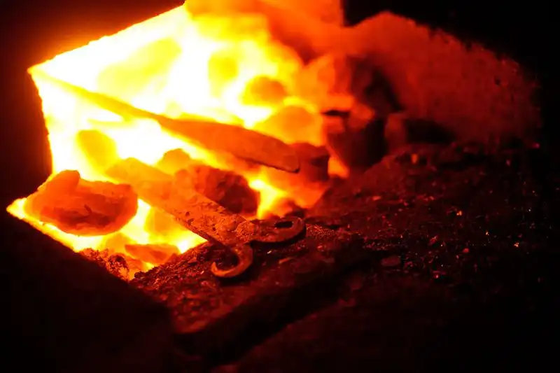 5. Пока я осматривался, Виктор уже успел надеть рукавицы и закинуть в печь порцию каменного угля. «Ну, что тебе интересно, что показывать?». Мне было очень интересно просто понаблюдать за процессом, но увидеть рождение из куска металлической полосы чего-нибудь исторического было просто выше моих ожиданий.