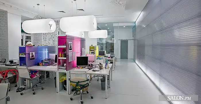 Офис этого международного рекламного агентства расположен в старинном дворянском особняке. В 30-х годах XIX века в нем жил Белинский, а в советские годы находился Красный Крест. Заказчики непременно хотели «уникальное и креативное» офисное пространство и конечным результатом оказались довольны. Здесь очень органично и почти незаметно соседствуют классика и хай-тек. Современность видна сразу, а классический декор, как ремарка на полях, проявляется в лепнине на потолке, филенчатых дверях и чуть отреставрированной кирпичной кладке, которая удивительным образом тут сохранилась. Впрочем, как и парадная лестница, которую архитекторы не стали ломать, а, наоборот, превратили в главную составляющую интерьера. Дизайнерский свет, яркая авторская мебель, обилие стекла и всевозможных подсветок делают этот офис действительно креативным и ни на что не похожим.