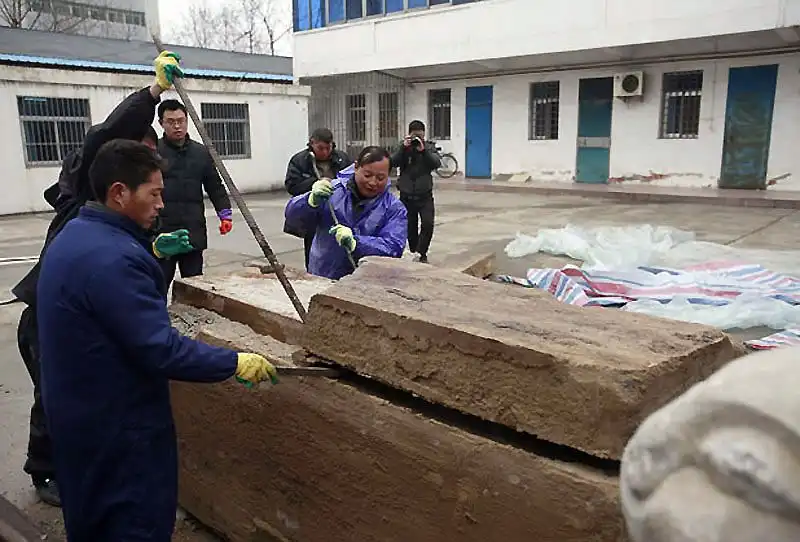 2. Захоронение из трех каменных гробов было обнаружено строителями на глубине два метра в провинции Цзянсу на востоке Китая.
