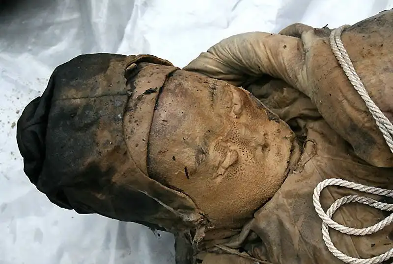 5. Полутораметровое тело, завернутое в плотную хлопковую ткань, хорошо сохранилось. Судя во всему найденная женщина относилась к высшему сословию.