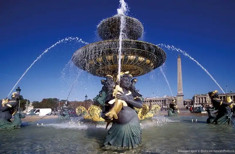 Фонтан Фонтен-де-Мер на одной из главных парижских площадей, площади Согласия. Это самая большая площадь Парижа (8,64 га).
