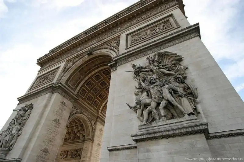 Триумфальная арка расположена в центре площади Шарля де Голля, в западном конце Елисейских Полей. Арка была построена в честь солдат, сражавшихся за Францию. На ее внутренних сторонах можно прочитать имена военачальников и названия сражений. Под Аркой находится Могила Неизвестного Солдата, павшего во время Первой мировой войны.