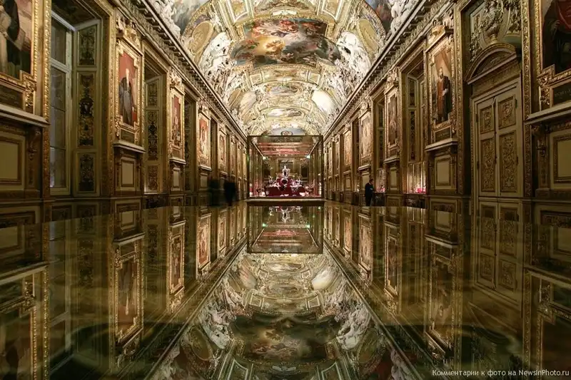 Затейливая роспись на потолке галереи Аполлона в парижском музее Лувр отражается в отполированном полу и выставочных витринах. Строительство галереи началось в 1661 году и было полностью закончено только к 1851 году. В общей сложности, над ее отделкой работало более 20 художников. В галерее Аполлона находятся произведения французского искусства с 200-летней историей. Здесь также хранятся королевские драгоценности, в том числе знаменитые алмазы «Регент» (140 карат) и «Санси» (53 карата), а также 105-каратный рубин «Кот-де-Бретань».