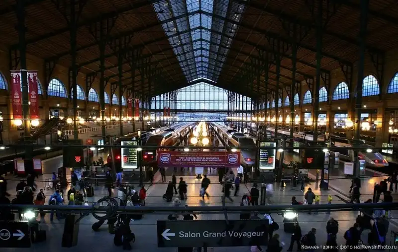 В Париже есть несколько крупных железнодорожных вокзалов, в том числе представленный на снимке Северный вокзал (Гар-дю-Нор). Он был назван таким образом, так как предполагалось, что с него пассажиры будут уезжать в Бельгию, Нидерланды, северную Германию и Скандинавские страны. Это самый загруженный вокзал в Европе и третий по загруженности в мире.
