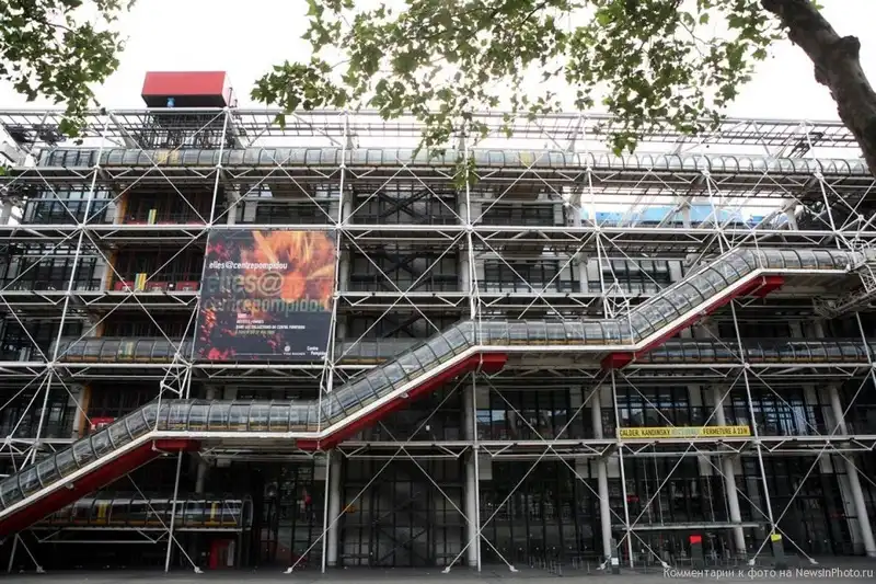 Центр Помпиду в Париже. Его промышленный стиль 1977 года резко контрастирует с окружающими зданиями в этом старейшем районе Парижа, недалеко от собора Парижской Богоматери. В центре Помпиду расположена публичная библиотека, а также Французский национальный музей современного искусства.