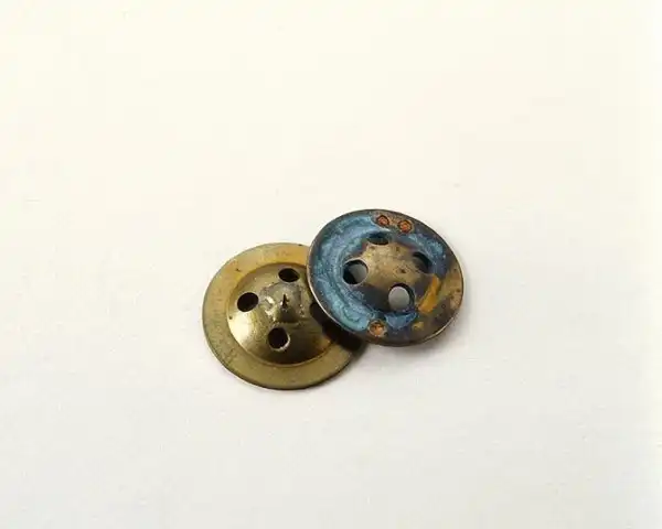 Компас в виде пары кнопок. Чтобы сориентироваться по такому компасу, его половинки нужно установить друг на друга, и прибор будет работать.