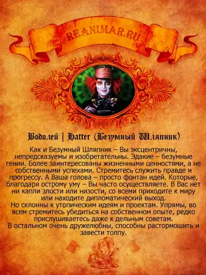я так и думала, что окажусь шляпником) офигенный гороскоп. оригинально и всё в точку! в избранное
