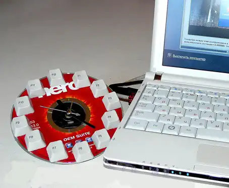 Для их изготовления Вам потребуется совсем немного. Клеевой пистолет, старые CD-диски, кнопки от клавиатуры, отвертка и небольшие китайские часы.