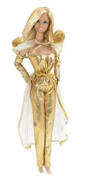 На стыке 70ы-х и 80-ых годов эта Барби Золотая Мечта застала пересечение двух модных течений, смешав блеск и объем легкой воздушной ткани в одном удивительном костюме. (Mattel)
