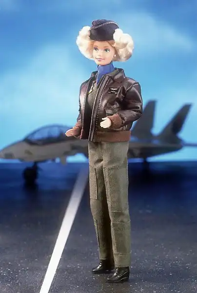 В 1989 году Барби присоединилась к армии в форме, которую одобрили даже в Пентагоне. Два года спустя Барби Пилот ВВС попыталась спрятать свою пышную прическу в этой крошечной пилотке, но, кажется, ей это не удалось. (Mattel)