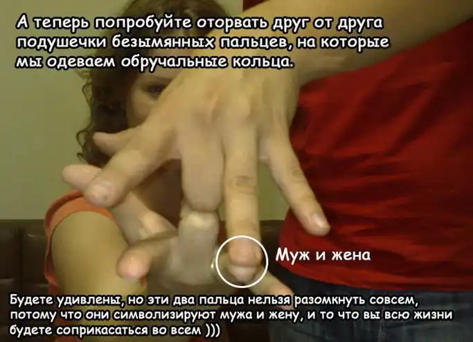 Посмотрите на свою правую руку - вот прямо сейчас - на каком пальце у вас обручальное кольцо, если есть конечно :)? Никогда не думали почему кольца надевают именно на безымянный палец, а ни на какие-нибудь другие?