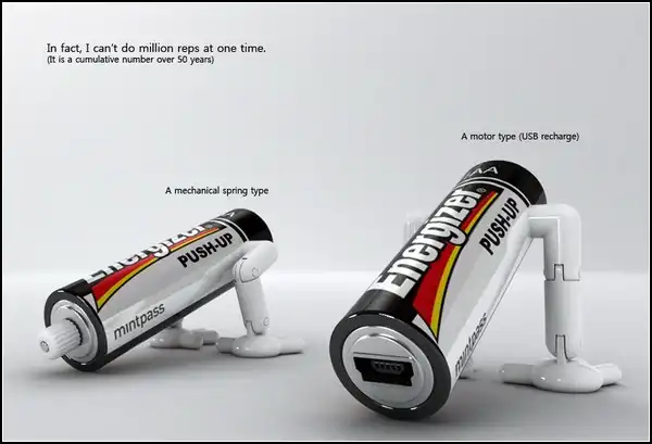 А вот для того, чтоб зарядить спортивные батарейки Pushup Mint Battery, нужно попытаться для вас самим. Ведь вначале такая батарейка находится в положении упор лежа, а вы с помощью пальца должны посодействовать ей отжиматься. Таким макаром, этот аккумулятор и заряжается.