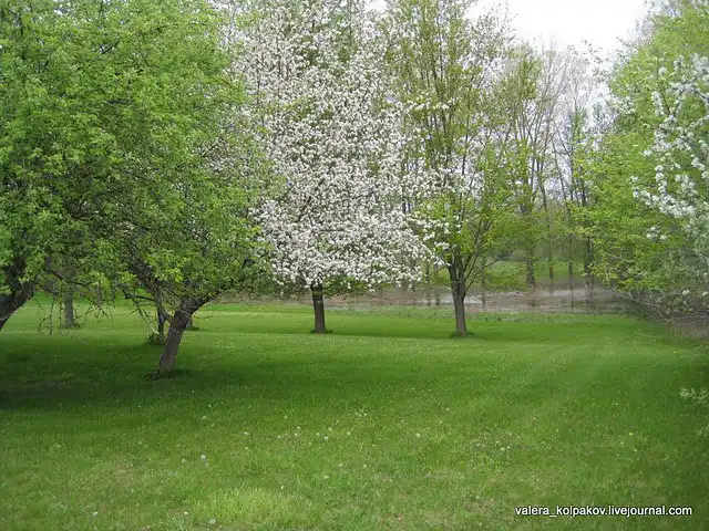 Здесь цветут яблони. Осенью олени приходят сюда чтобы покушать яблочек.