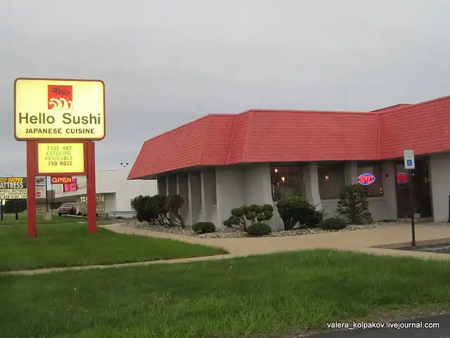 Однако, уже становится поздно, а я еще не ужинал. Заезжаю в единственный в округе японский ресторан со смешным названием «Здравствуйте, суши!»
