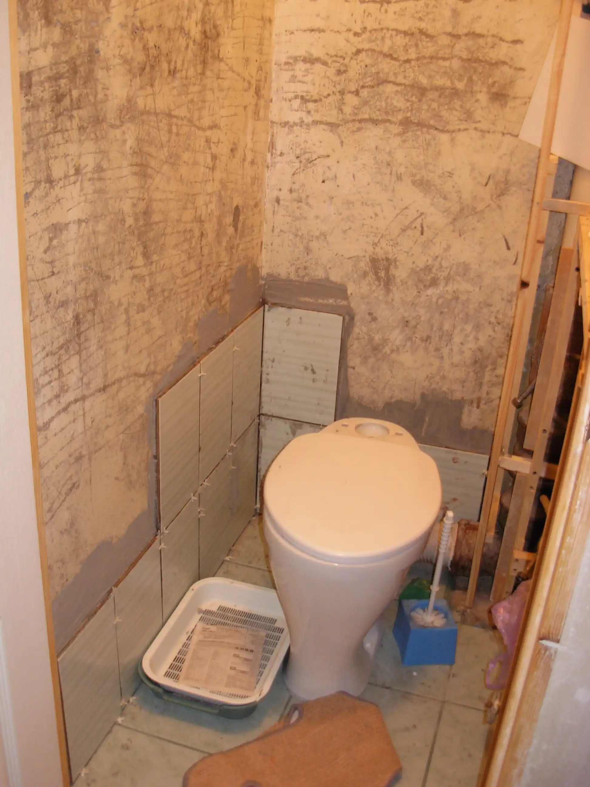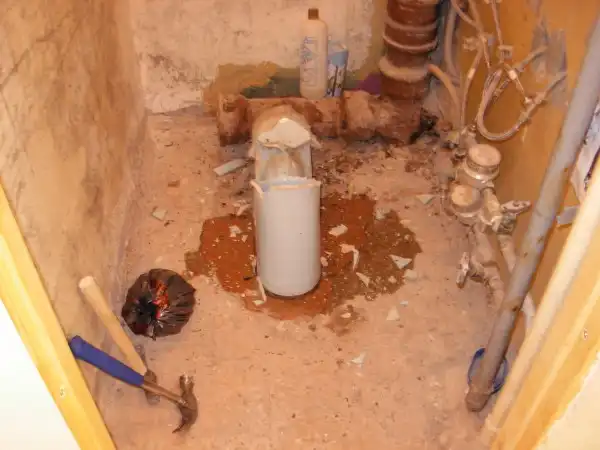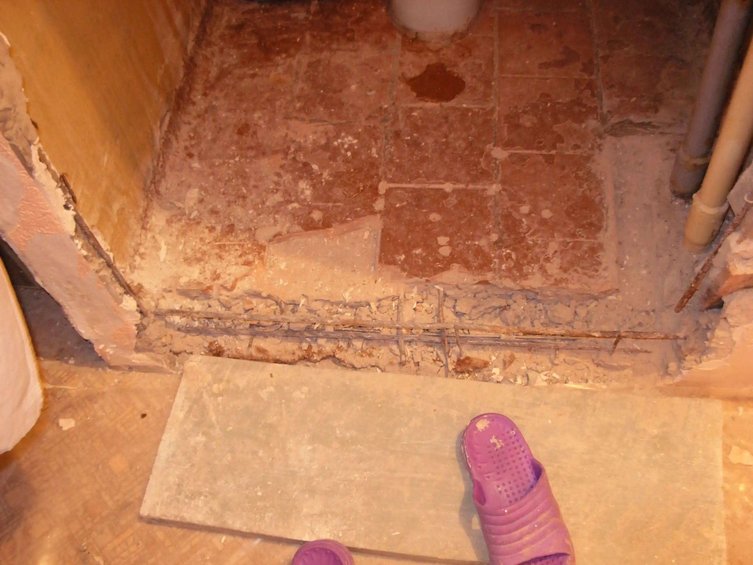 Так как в процессе сдергивания краски обнаружилась дыра в туалет.