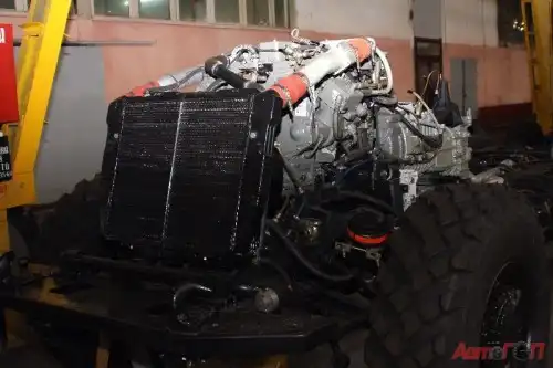 установка нового двигателя ЯМЗ-536, доработка коробки передач, узлов и агрегатов трансмиссии, доработка тормозной системы и установка АВС