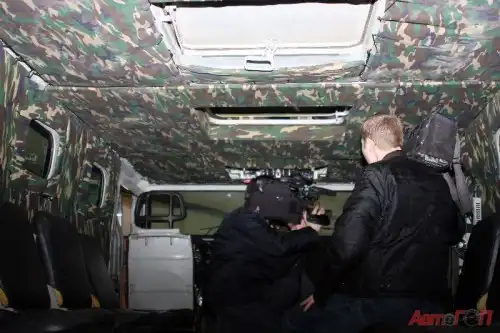 В перечне образцов специального оборудования СПМ-3 есть «Пелена» (система блокировки радиоуправления взрывных устройств), модули постановки дымовых завес БТД, система нелетальной защиты периметра «Рулет ВВ», что позволяет говорить о «Медведе» как о системе коллективной защиты всех транспортных средств, находящихся рядом с ним на определенном расстоянии, причем это может быть применено, как при сопровождении колонн, так и на «привале». Перечень спецоборудования внушительный, можно упомянуть еще, например, фильтровентиляционную установку ФВУ-100 и систему пожаротушения колес «Допинг», а также ксеноновый управляемый прожектор ОУ-5М (при работе «на улице» он может работать в стробоскопическом режиме – специалисты говорят, что это весьма эффективно).