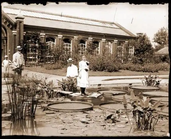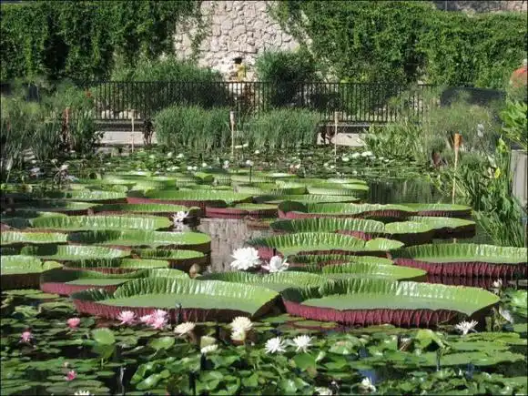 Этот вид называется Victoria amazonica. Самюе большие листья достигают 3-х метров в диаметре, а стебель до 7-8 метров. Листья легко выдерживают вес ребенка. Первое письменное описание растению дал Роберт Шомбургк в 1836 и назвал ее Victoria regia в честь королевы Виктории, но в последствии ее переименовали.