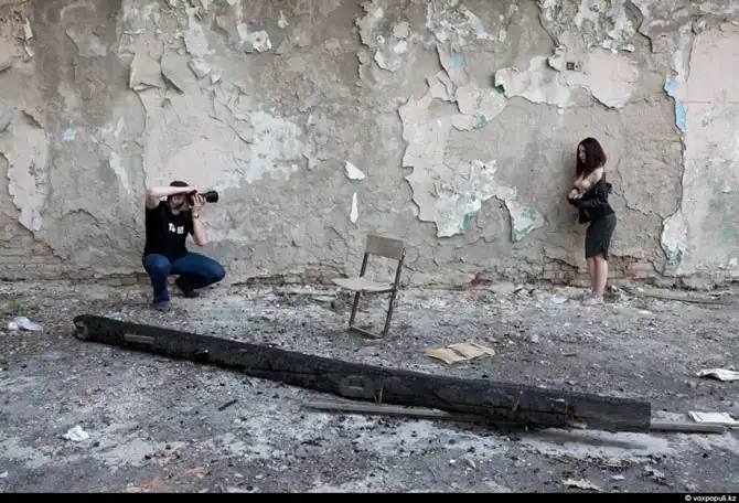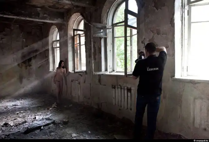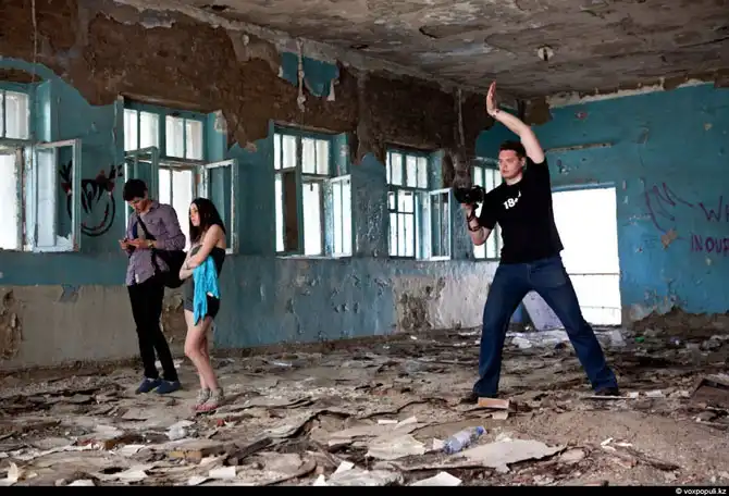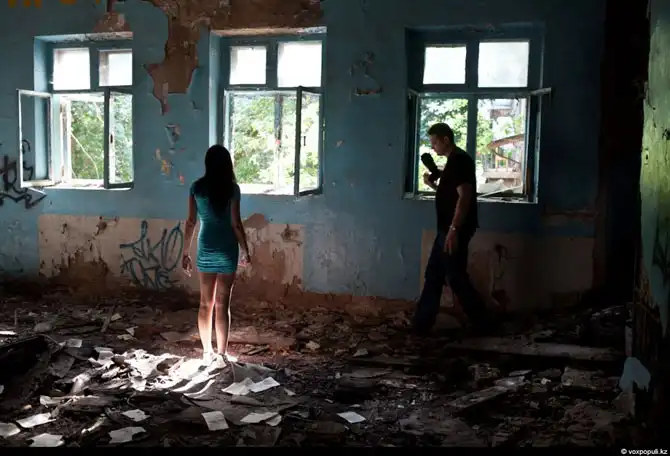 Для съемок мы выбрали заброшенное здание в центре Алматы. Место очень фактурное, Михаилу понравилось. За тысячу тенге охрана без проблем пустила нас внутрь.