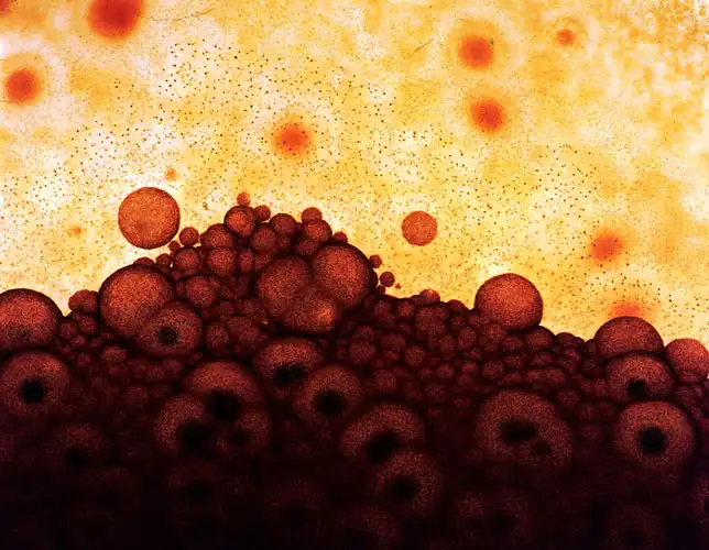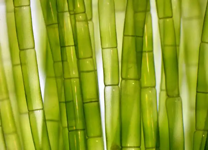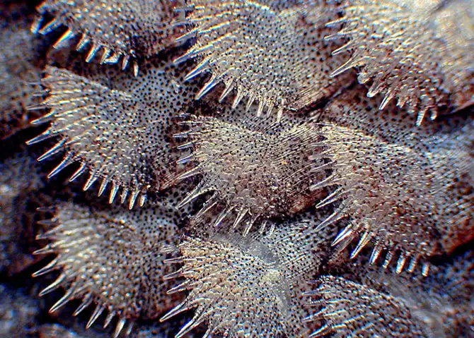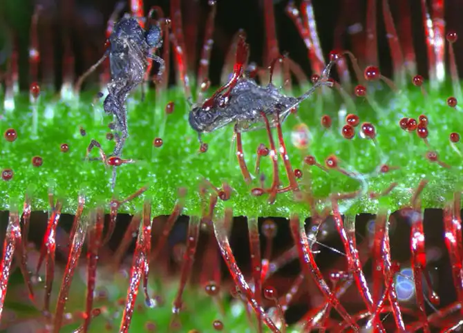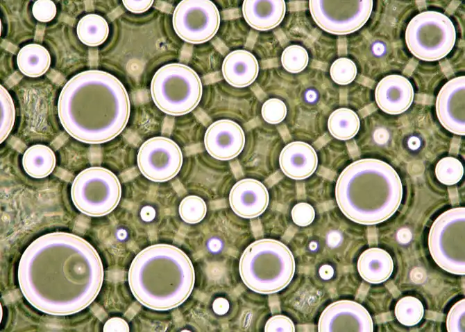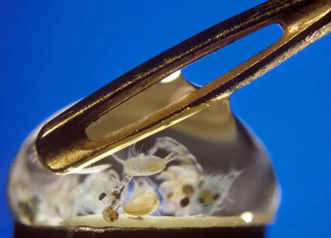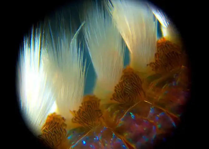 Гидры закрепились на густой пленке, которая укрывает икринки саламандры.