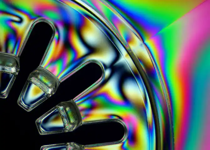 Кристаллы аскорбиновой кислоты и сахарозы.