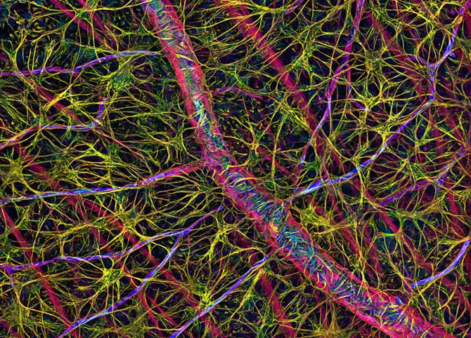 Сетчатка крысы с астрацитами и кровеносными сосудами.