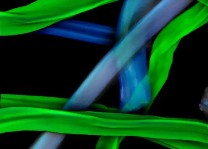 Перед вами разнообразные снимки, сделанные при помощи электронного микроскопа. Фотографии были номинированы на международном конкурсе макрофотографий, конкурс был объявлен компанией Nikon.Пучки актина – белка мышечных волокон.