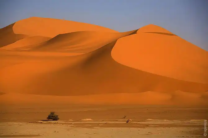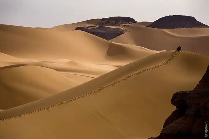 Неземные пейзажи и удаленность от цивилизации заставляет совершенно иначе взглянуть на окружающий мир. Сахара — воплощенный образ Пустыни. Бывают пустыни, которые выглядят иначе, но традиционный образ — это желтые песчаные дюны, черные скалы и караваны верблюдов. Сахара — именно такая. Здесь есть желтые песчаные дюны, черные скалы и караваны верблюдов…