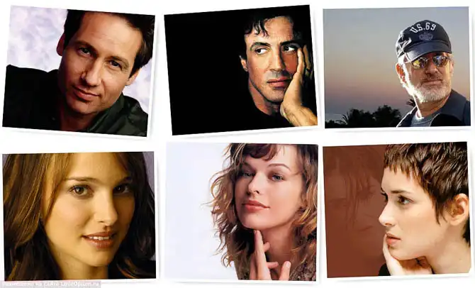 Русские корни есть у Дэвида Духовны, Сильвестра Сталлоне, Стивена Спилберга, Натали Портман, Милы Йововоч, Вайноны Райдер и Шона Пена. Прабабка актрисы Вупи Голдберг родом из Одессы.