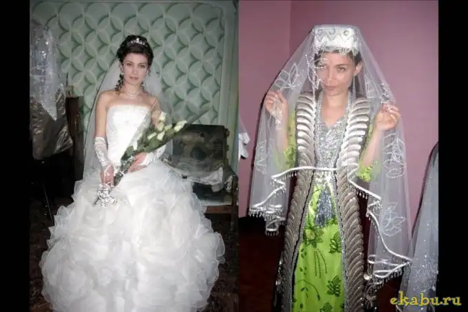 Уйгурские невесты готовят для свадьбы два наряда: белое свадебное платье в западном стиле для торжественного ужина, который проходит в первый день свадьбы, и традиционный уйгурский наряд для второго дня свадьбы, во время которого она приветствует гостей в качестве замужней женщины. (Photo: Rebecca Layton)