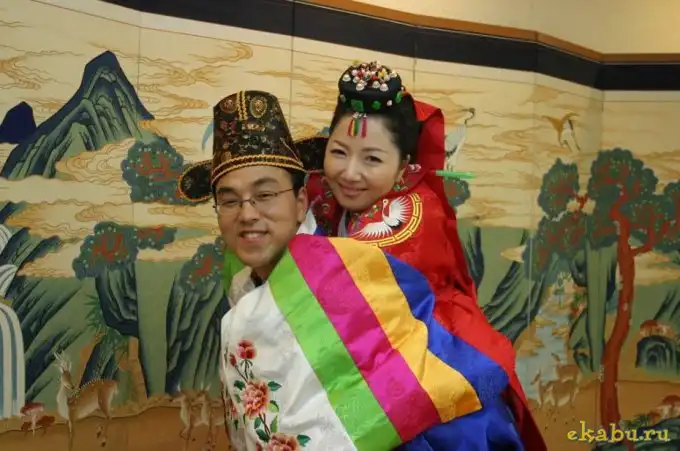 Корейские жених и невеста в традиционных свадебных нарядах. Вот уже две тысячи лет существует свадебный обычай, согласно которому молодожены в Корее облачаются в ханбок, традиционный корейский костюм ярких цветов и простых линий. (Photo:markhillary)