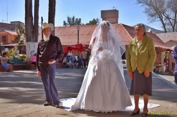 Невеста и ее родители готовятся совершить свадебную процессию по улице небольшого мексиканского городка. (Photo: presagio)