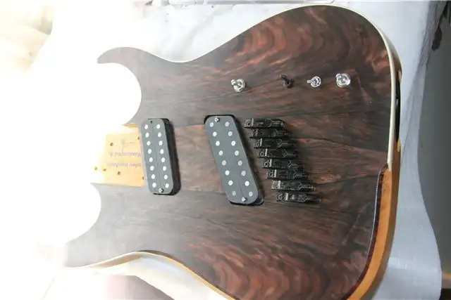 мензура 26,77 - 29,32(мультимензура). Радиус накладки 430 мм, материал макасар(Эбони)