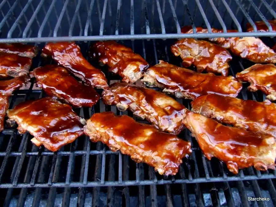 Теперь самое главное правильно произвести так называемый «осмозис» – по-русски это означает нанести на поверхность мяса столько соли, чтобы в процессе жарки образовалась корочка, удерживающая влагу внутри. Готовит ли бибикьюер мясо вместе с толченым чесноком, протертым луком, перцем всевозможными другими приправами, на уме у него только одно – осмозис. Поэтому бибикьюер ждет, когда приправа пропитается соком и прилипнет. Только после этого мясо снова посыпается (но не втирается!) приправами. И что еще очень важно в американском барбекю – мясо предварительно почти никогда не маринуется. В процессе жарки поджариваемые кусочки часто опрыскиваются водой или белым вином – это уж кому как больше нравится.