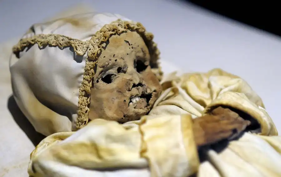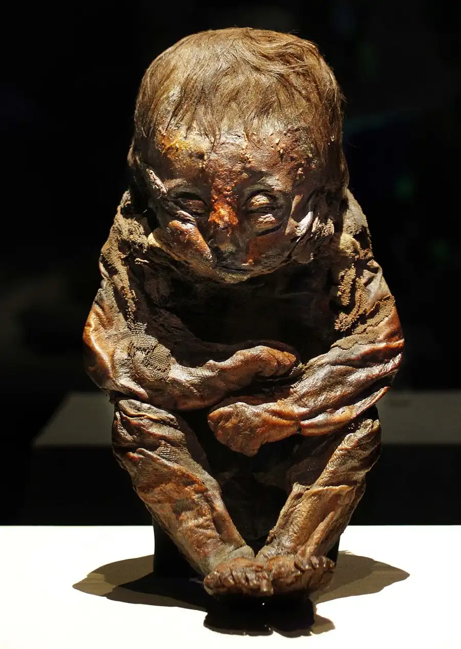 1.Детмольдский ребенок: это мумия перуанского ребенка возрастом восемь-десять месяцев, который скончался 6500 лет назад, скорее всего, из-за болезни сердца. Мумия была представлена на выставку музеем Детмольда, в Германии. Это одна из самых древних мумий в мире, она даже старше мумии фараона Туту на более чем три тысячи лет.