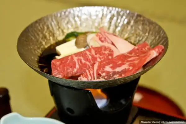 Потом в специальном соусе мы готовили мраморную говядинку...