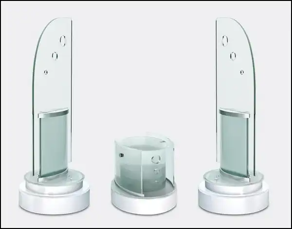 Очень стильное и необычное изобретение дизайнерской фантазии. Аудиоколонки Glass Speakers от компании Greensound Technology сделаны из стекла. Причем, в этих колонках звук распределяется по стеклу и распространяется на 360 градусов вокруг. Очень красиво и очень дорого.