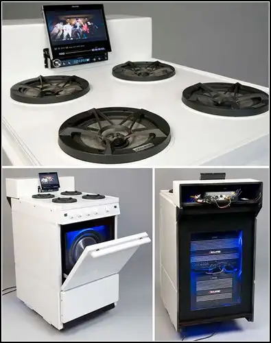 Стереосистема Cross-Culture от дизайнера Тайлера Хельда (Tyler Held) отлично подойдет для прослушивания музыки на кухне. Особенно, если это квартира-студия. Ведь сделана это система на основе кухонной плиты.