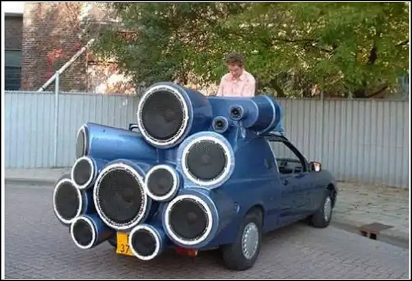 Есть такие неудержимые меломаны, которым все время чего-то не достает в том звуке, который предоставляет им их аудиосистема. Вот одним из таких людей, видимо, и является нидерландец Olaf Mooij, создавший автомобиль-колонки. Интересно, сможет ли эта машина двигаться только за счет издаваемой ею звуковой волны?