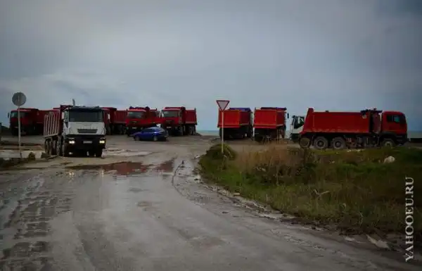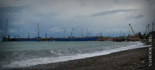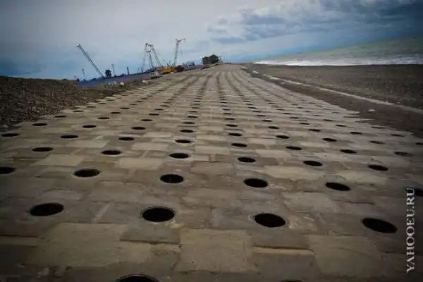 Вот такими плитами уложен берег вдоль олимпийской стройки.