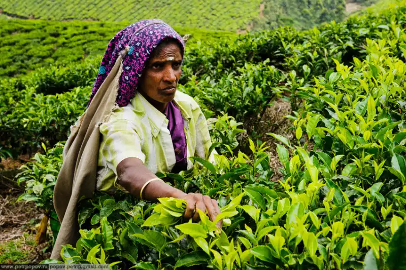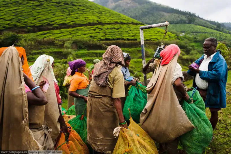 Работа у девушек незавидная и, мягко говоря, непростая, даже сложная. А если уж совсем говорить начистоту, то это тяжелый и изнуряющий труд под палящим индийским солнцем, требующий, тем не менее, тонкого обращения с нежными чайными листьями, на что плохо способны мужские пальцы, из-за чего сборщики чая - это почти всегда только женщины. Хотя, есть, кажется, и другая причина - мужчины в Индии довольно ленивы. Да и вообще, как показывает та же советская практика на сложном производстве, мужчины, по большей части, просто неспособны выполнять с утра до вечера скучную монотонную работу. Так или иначе, но девушки-сборщицы не теряют расположения духа и во время работы умудряются шутить и смеяться.