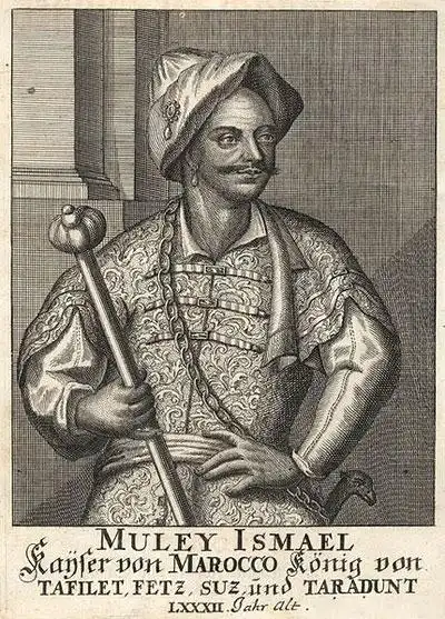 Султан, ставший прототипом короля бубен в классической колоде игральных карт, правил Марокко в конце 17-го столетия и прославился как «король-воин», создавший армию из 150 тысяч чернокожих наемников и построивший себе укрепленную столицу Мекнес руками рабов-христиан, захваченных подотчетными султану корсарами в Средиземном море и Атлантике. После завершения строительных работ он продал белых невольников их семьям в Европе по завышенным ценам. Алчным и кровожадным был «бубновый король». Это именно он в легендарном французском кино домогался любви красавицы Анжелики.